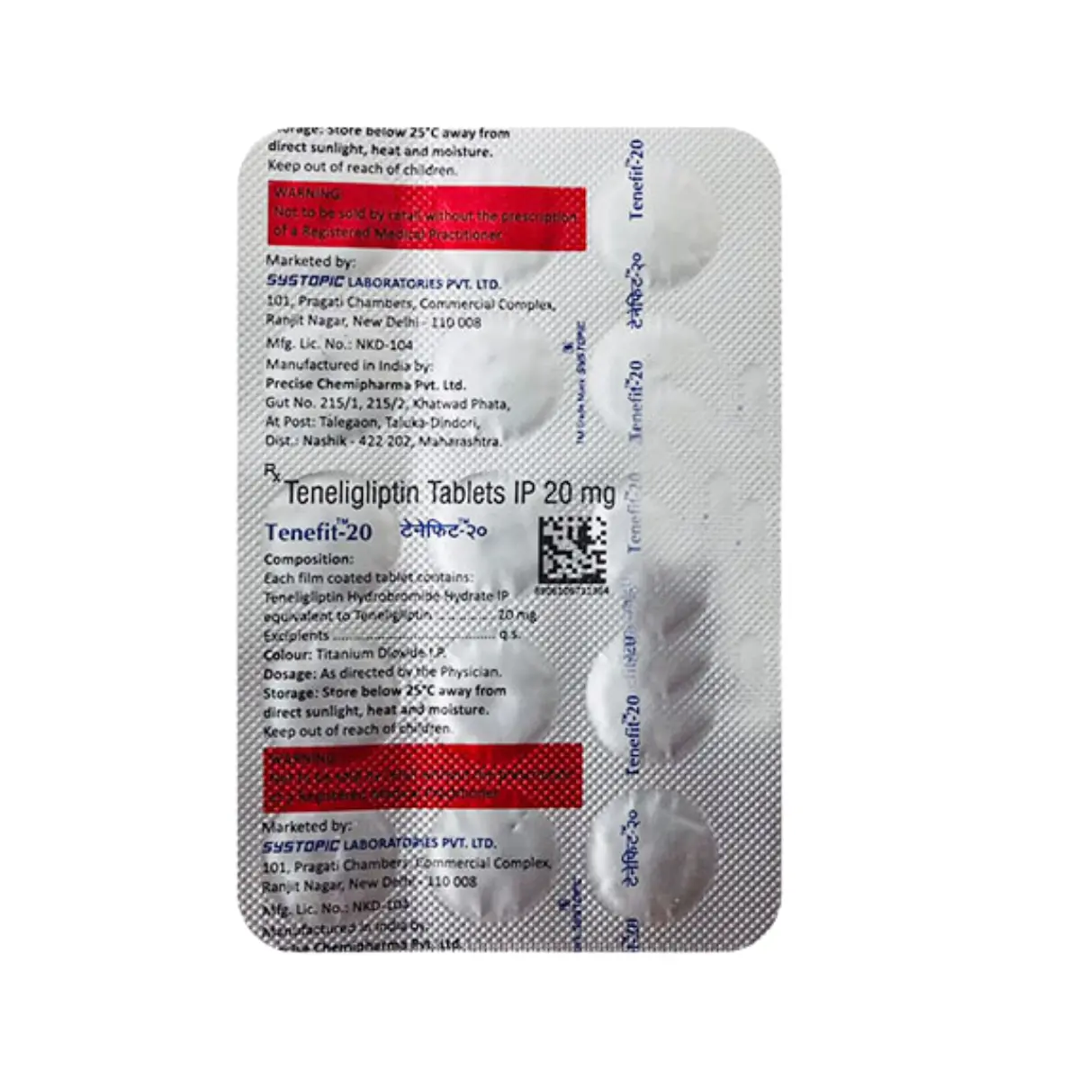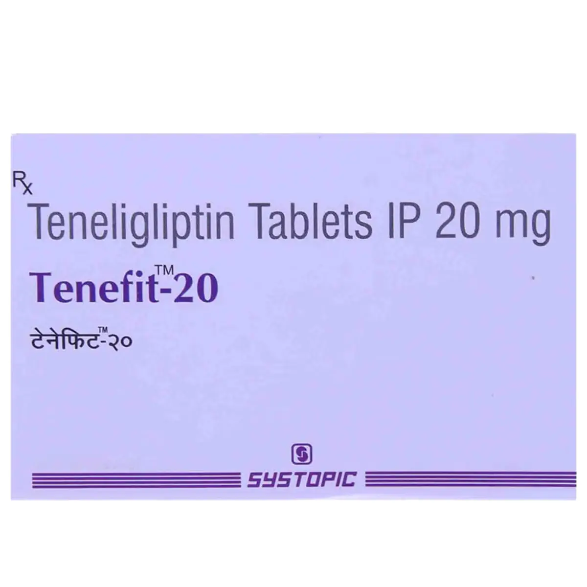 Tenefit 20 Tablet is a medication designed to assist in the management of type 2 diabetes mellitus. It should be utilized in conjunction with a balanced diet and consistent physical activity to effectively regulate blood glucose levels. By doing so, it helps mitigate the risk of serious complications associated with diabetes, such as renal impairment and vision loss. This medication is typically prescribed when dietary modifications and exercise alone, or when other antidiabetic drugs, do not adequately control blood sugar levels. Depending on the individual case, a healthcare provider may recommend Tenefit 20 as a standalone option or in combination with other diabetes treatments. Patients can take this tablet with or without meals, and the dosage will be tailored based on personal health status and blood sugar readings. It is essential to adhere to the prescribed schedule and use the medication precisely as directed by your healthcare professional. Consistency in taking the tablet at the same time each day is crucial for optimal effectiveness. Patients should not discontinue use without consulting their doctor, as this medicine plays a significant role in managing blood sugar levels and preventing future health complications. Following the diet and exercise regime advised by your healthcare provider is critical, as lifestyle choices greatly influence diabetes control. It is also crucial to be aware of the potential side effects, including the symptoms of hypoglycemia, and to carry glucose or sugar sources to address any occurrences of low blood sugar. If side effects persist or cause concern, contacting a healthcare professional is advisable.