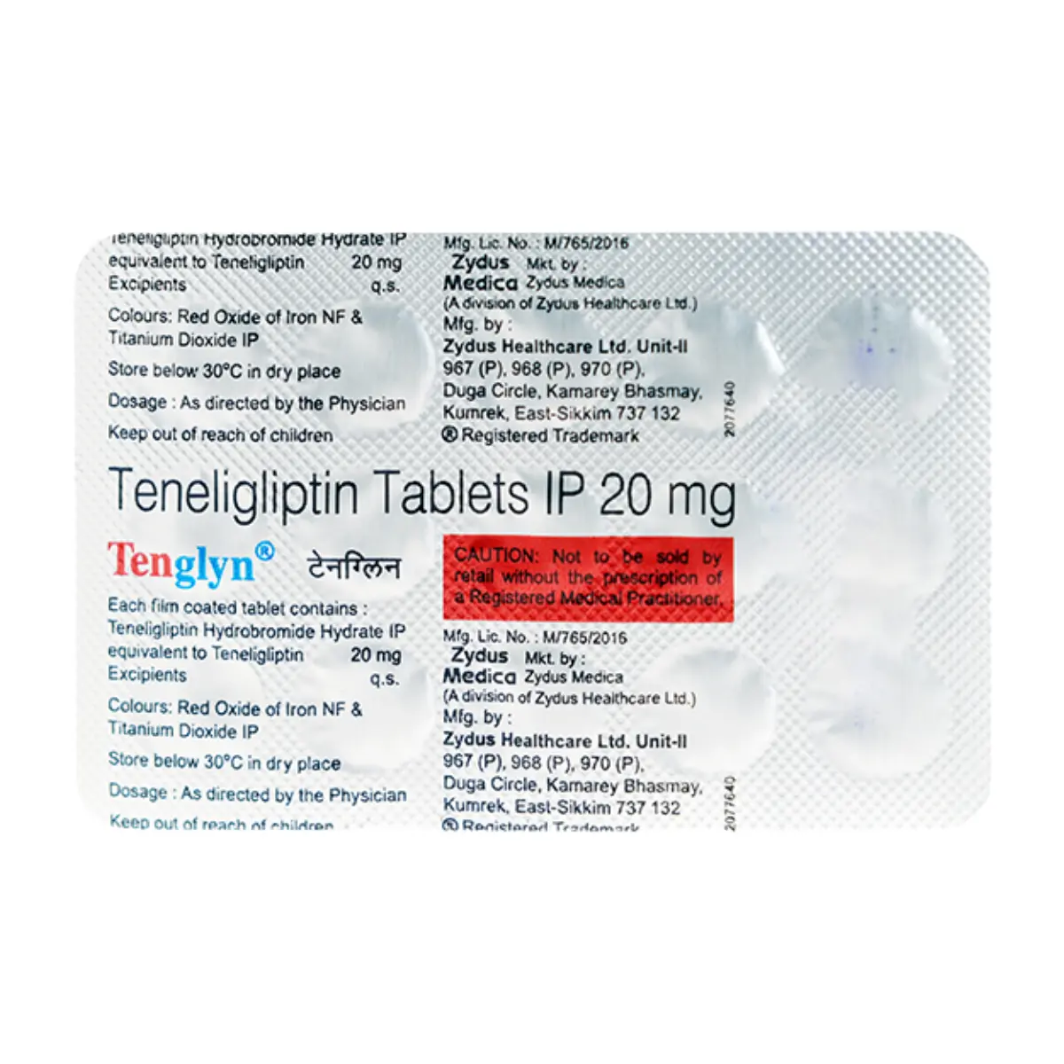 Tenglyn Tablet is a pharmaceutical agent indicated for the management of type 2 diabetes mellitus. It is typically utilized in conjunction with a balanced diet and regular physical activity to help regulate blood glucose levels effectively. Controlling blood sugar is crucial for preventing severe diabetes-related complications such as renal impairment and vision loss. This medication is generally recommended when dietary modifications and exercise alone or other antidiabetic medications prove inadequate in controlling glycemic levels. Your healthcare provider may suggest this medication as a standalone treatment or in combination with other diabetes therapies. It is permissible to take this medication with or without meals. The prescribed dosage will vary based on your specific health status and glucose readings, and it is essential to follow your doctor’s instructions closely. Consistency is key; therefore, taking it at the same time each day is advised to maximize its efficacy. Discontinuation of the medication should only occur under the guidance of your healthcare provider. This treatment assists in maintaining blood sugar control, thereby reducing the risk of future serious health issues. Adherence to the recommended dietary and exercise plan is paramount, as lifestyle choices significantly impact diabetes management. It is essential to be aware of potential side effects, including symptoms of hypoglycemia, such as lightheadedness and sweating, and to have a plan for managing these symptoms. Regular monitoring of kidney function and blood glucose levels may be necessary to ensure the medication is providing the desired effects.
