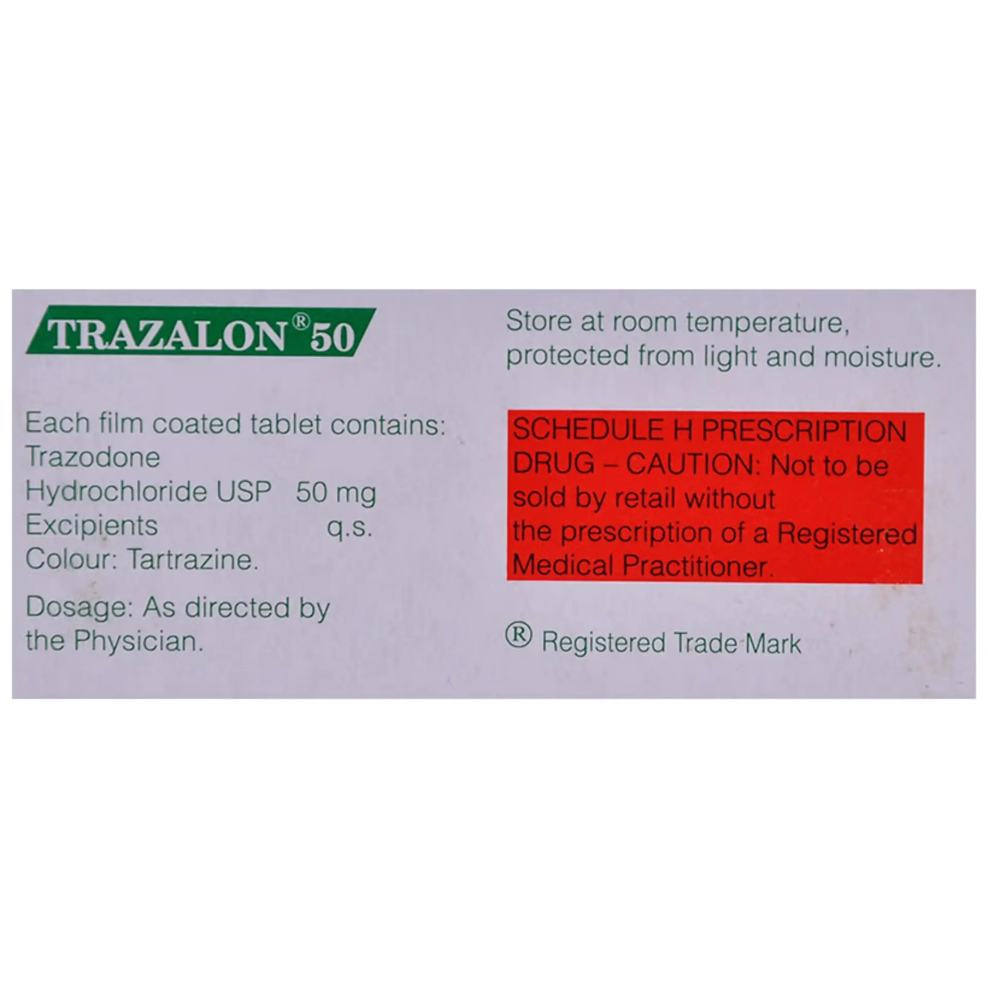 Trazalon 50 mg Tablet is indicated for the management of depression. The pharmacological action of this medication involves enhancing the levels of neurotransmitters in the brain, which contribute to nerve relaxation and promote a calming effect. It is recommended to take Trazalon 50 mg Tablet with food to optimize absorption and effectiveness. For best results, it is advisable to administer this medication at the same time each day to maintain consistent levels in the body. It is essential to adhere to the prescribed treatment plan and complete the entire course, even if symptoms improve. Abruptly discontinuing this medication may lead to a resurgence of symptoms or worsening of the condition. Some patients may experience common side effects such as constipation and blurred vision. Additionally, feelings of dizziness and drowsiness might occur, making it important to avoid activities that require clear focus, including driving. While many side effects are temporary and diminish as the body adjusts to the medication, it is crucial to seek medical advice if they persist or cause concern. Prior to initiating treatment with Trazalon 50 mg Tablet, patients should disclose any history of seizures, severe kidney, liver, or heart issues, narrow-angle glaucoma, or any psychiatric conditions. It is also important to notify a healthcare provider of any notable changes in mood or behavior, particularly if there are signs of increasing depression or suicidal thoughts.