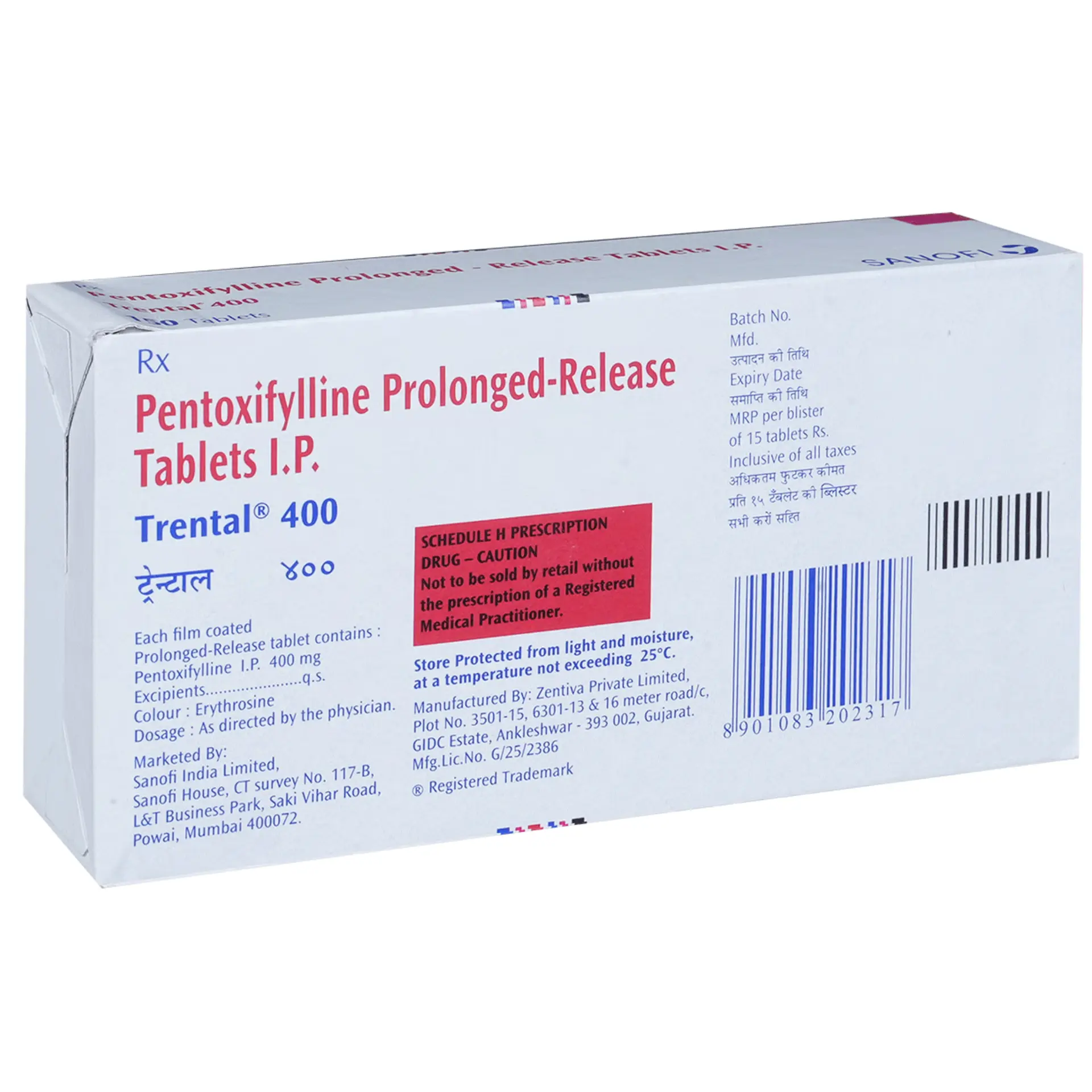 TRENTAL 400 TAB contains the active ingredient pentoxifylline and is commonly used to support patients with circulation issues, particularly in conditions related to blood flow. It is often prescribed to help improve blood flow in the small blood vessels, which can enhance overall mobility and comfort for individuals facing challenges related to poor circulation.
