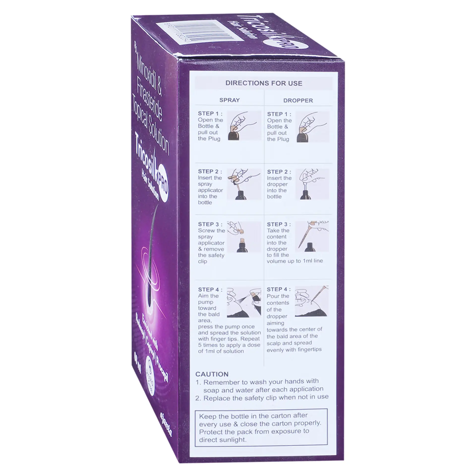 Tricosilk Pro Hair Solution is a specialized formulation designed to assist men experiencing hair loss. This solution functions by enhancing circulation to the hair follicles, which can help avert further hair loss and promote hair regrowth. Users may observe improvements in hair length, thickness, and overall density as a result of consistent application. It is crucial to stick to the dosage and duration prescribed by a healthcare professional or indicated on the product label. Prior to application, ensure that the scalp is clean and dry to maximize absorption. Be prepared for the possibility that noticeable hair growth may take several months, and the initial regrowth may appear soft, colorless, and subtle. Adhering to the exact dosage is important, as exceeding the recommended amount will not enhance results and may elevate the risk of side effects. Continued use as directed by a physician is necessary to achieve and sustain desired hair growth. If there is no improvement after a duration of 4 to 6 months of use, it is advisable to consult with a doctor. It is important to note that this product is intended solely for male use and is not suitable for females. Use this medicine only under medical supervision. Follow the dose and schedule exactly as advised. Do not stop abruptly without guidance. Keep a record of any unusual symptoms and share them with your clinician. Combine therapy with appropriate lifestyle measures and routine monitoring as recommended.