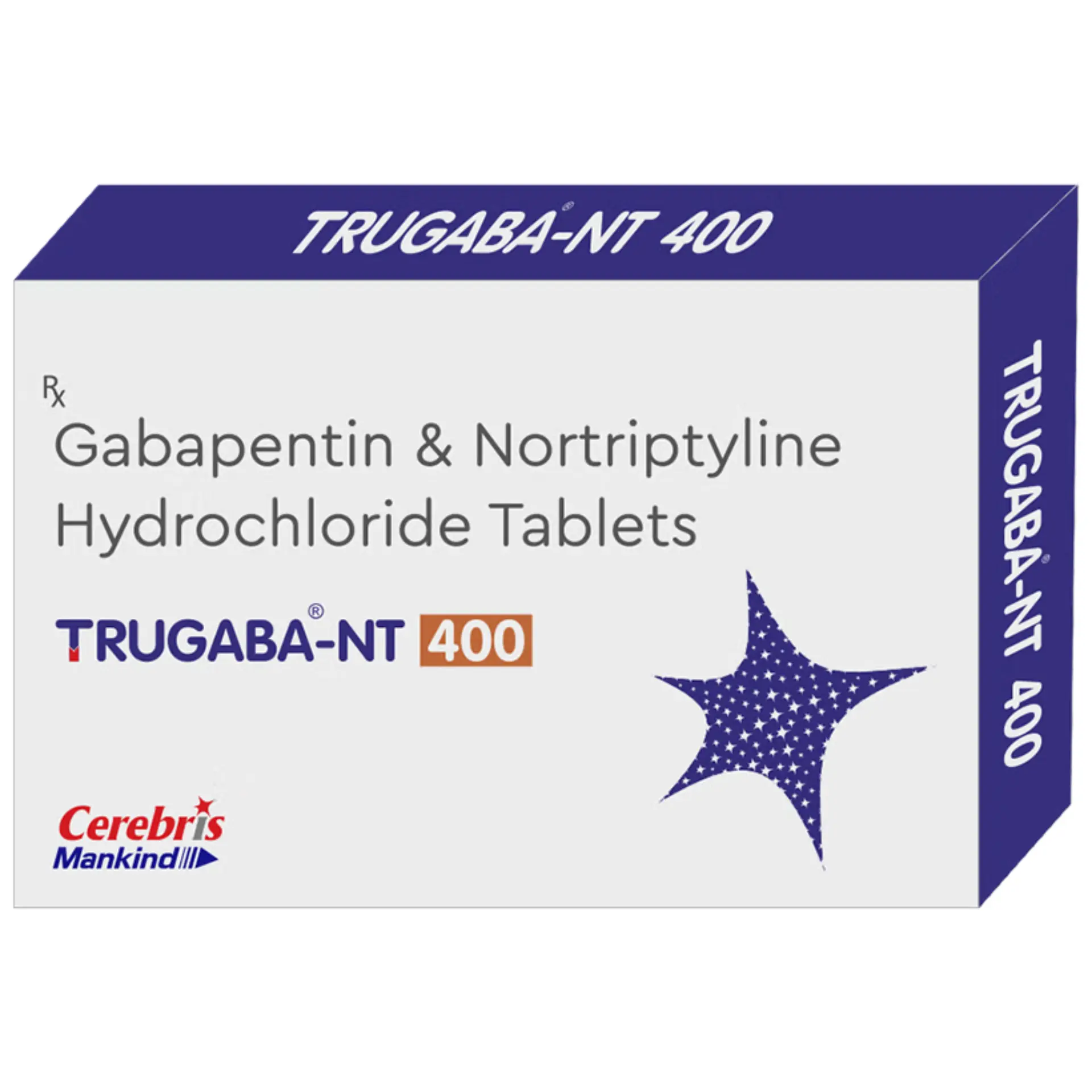 Trugaba-NT 400 Tablet is a composite medication designed for managing neuropathic pain. It alleviates discomfort by inhibiting the transmission of pain signals to the brain. This oral medication can be consumed with or without food, though it is recommended to take it at night. To ensure stable levels of the drug in your system, it is beneficial to take it at the same time each day. If a dose is forgotten, it should be taken as soon as it is remembered, but if it is almost time for the next dose, the missed dose should be skipped. Completing the entire prescribed course is vital, even if symptoms improve, as abruptly stopping the medication without consulting a healthcare provider may lead to a worsening of symptoms. Notable side effects may include constipation, urinary difficulties, weight gain, fatigue, and dry mouth. This medication can also induce dizziness and drowsiness, so it is advisable to refrain from driving or engaging in activities that demand mental alertness until the effects are known. Weight management through regular exercise and a balanced diet is also suggested. It is crucial to notify your physician of any significant mood changes, as there is a potential risk of suicidal ideation with this medication. Before initiating treatment, inform your doctor about any history of kidney or liver conditions, and disclose all concurrent medications, as they may influence the efficacy of this treatment. Additionally, it is important to discuss any plans related to pregnancy or breastfeeding with your healthcare provider.