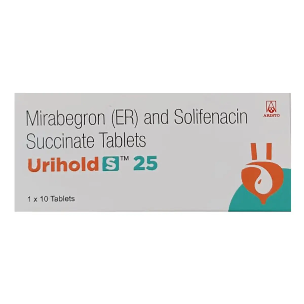 URIHOLD S 25MG TAB 10S is a combination medication designed to help manage overactive bladder symptoms, providing relief to patients who may experience urgency, frequency, or incontinence. This can significantly improve daily comfort and activities. The formulation includes Mirabegron and Solifenacin, which work together to help relax the bladder muscle and reduce spasms, enhancing the overall control over urinary functions.