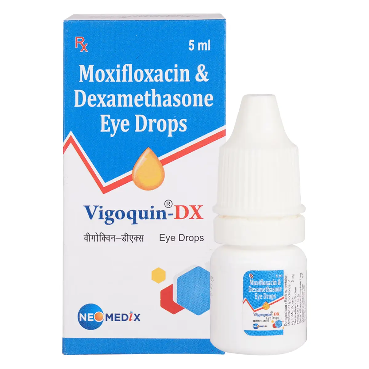 VIGOQUIN DX is a combination eye drop solution that is primarily used to help manage certain eye conditions that may require both an antibiotic and an anti-inflammatory treatment. It is designed to support patients dealing with infections and inflammation in the eye, promoting comfort and healing.