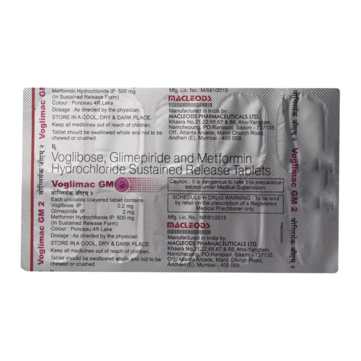 Voglimac GM 2 Tablet SR is classified as an anti-diabetic medication designed for managing type 2 diabetes mellitus in adult patients. This medication consists of a combination of active ingredients that work together to help regulate blood sugar levels in individuals diagnosed with diabetes. It is important to take Voglimac GM 2 Tablet SR alongside meals or shortly before eating to maximize its effectiveness. Consistency in administration at the same time each day is crucial for the best outcome. Dosing should be tailored by your healthcare provider, and adjustments may be necessary over time based on your blood glucose monitoring results. Continuation of therapy is essential, even when your blood sugar appears to be stable or you are feeling well. Discontinuing the medication without consulting a healthcare professional may lead to elevated blood glucose levels, increasing the risk of severe complications such as kidney damage, vision loss, neuropathy, and limb loss. Remember that this medication is part of a broader diabetes management plan that should also incorporate a balanced diet, regular physical activity, and weight management as per your doctor’s recommendations. Your lifestyle choices will significantly influence your diabetes control and overall health. Being mindful of symptoms related to low blood sugar, such as sweating, dizziness, headaches, and shakiness is vital. Regular meals and having fast-acting glucose sources available can help prevent hypoglycemic episodes.