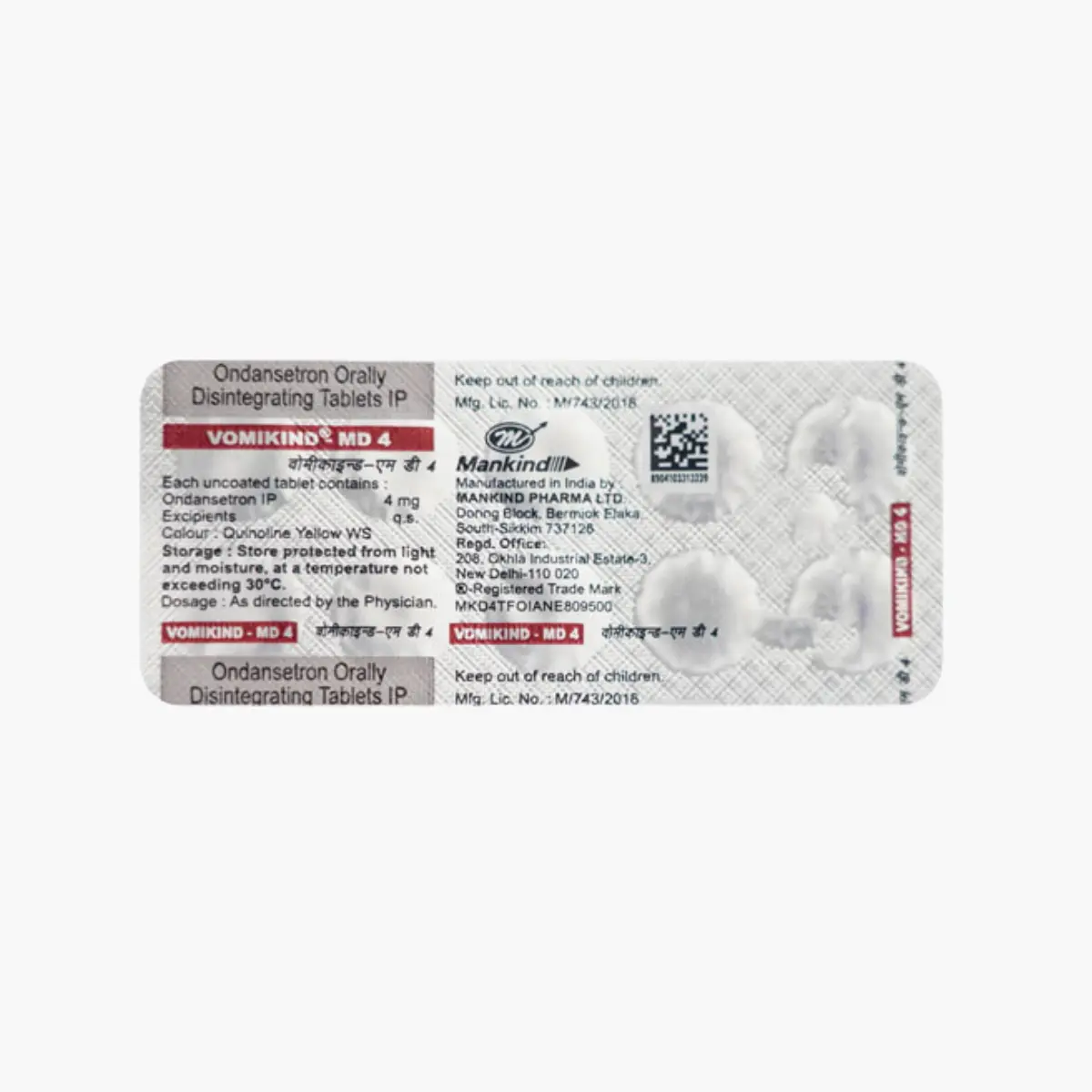 VOMIKIND MD 4 TAB is a medication typically used to help manage nausea and vomiting, especially those caused by certain treatments or medical conditions. By alleviating these symptoms, it supports patients in maintaining their comfort and daily activities. This medication is particularly useful for individuals undergoing chemotherapy or surgery, where nausea is a common concern.