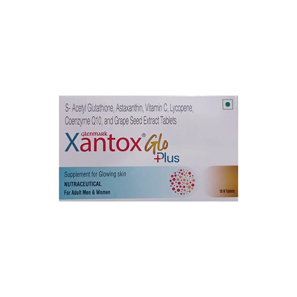Xantox Glo Plus is a dietary supplement formulated to potentially enhance skin appearance and overall glow. It features a specialized blend that includes S-Acetyl Glutathione, Astaxanthin, Vitamin C, Lycopene, Coenzyme Q10, and Grape Seed Extract. This product is intended for adult use, catering to both men and women. The ingredients are selected for their potential benefits in supporting skin vitality and promoting a luminous complexion. The formulation may contribute to skin health by addressing oxidative stress, which can affect the skin’s natural radiance. Additionally, it may assist in reducing visible signs of aging by utilizing its antioxidant properties. Users might experience improvements in skin texture and hydration through its natural components. Furthermore, the supplement is designed to help bolster immunity and encourage collagen production, which is essential for maintaining skin elasticity. Lastly, it may offer protective benefits against skin damage caused by environmental factors, reinforcing the skin’s defenses through its antioxidant support. Use this medicine only under medical supervision. Follow the dose and schedule exactly as advised. Do not stop abruptly without guidance. Keep a record of any unusual symptoms and share them with your clinician. Combine therapy with appropriate lifestyle measures and routine monitoring as recommended. Use this medicine only under medical supervision. Follow the dose and schedule exactly as advised. Do not stop abruptly without guidance. Keep a record of any unusual symptoms and share them with your clinician. Combine therapy with appropriate lifestyle measures and routine monitoring as recommended.