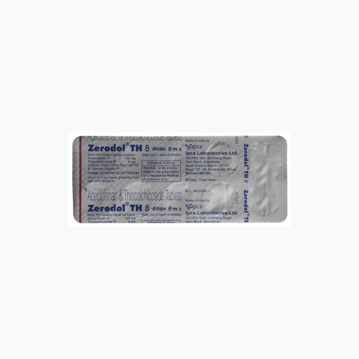 The active ingredients in ZERODOL TH 8 include Aceclofenac and Thiocolchicoside. Aceclofenac is a non-steroidal anti-inflammatory drug (NSAID) that works by reducing inflammation and pain in the body. Thiocolchicoside is a muscle relaxant that helps to alleviate muscle stiffness and spasms, allowing for greater ease of movement.