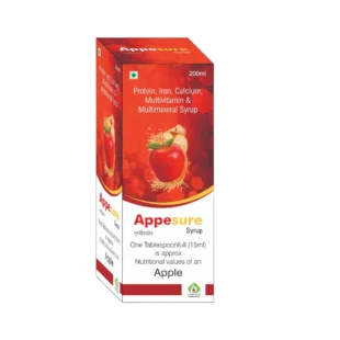 APPESURE (Protein, 94 mg,IRON 0.22MG,calcium 11mg,Megnesium. 9mg,ASCORBIC ACID 8.4 mg,sodium 2 mg,pot. 1.95 mg,Phosphorus 1.5,nicotinamide 0.166 mg, D-PANTHENOL 0.111 mg,vit e 0.33mg,PYRIDOXINE HCL ,0.075 mg,MANGANESE 0.064MG,copper 0.049 mg,RIBOFLAVIN SOD.PHOS.0.047MG,THIAMINE HCL 0.031MG,VITAMIN A PALMITATE 57.6MCG,l-lysine 10mg,zinc 0.07 mg,folic 5mcg & MENADION 4MCG)